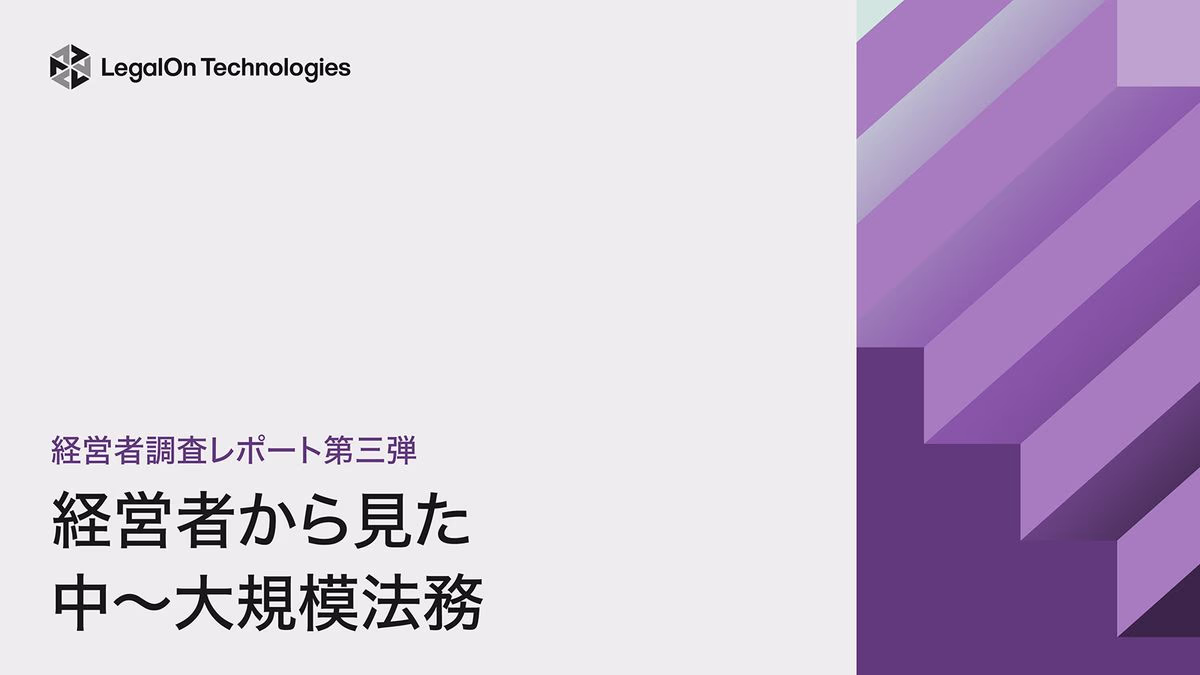 LegalOn Technologiesでは2022年9月、企業における法務の重要性を客観的に調べるため、全国390人の経営者を対象に「法務に関する実態調査」を実施しました。「成長企業法務」「小規模法務」に続き、このレポートでは「中~大規模法務」に焦点をあて、法務が経営に与えた影響や、経営陣からの期待について得られたデータを紹介します。