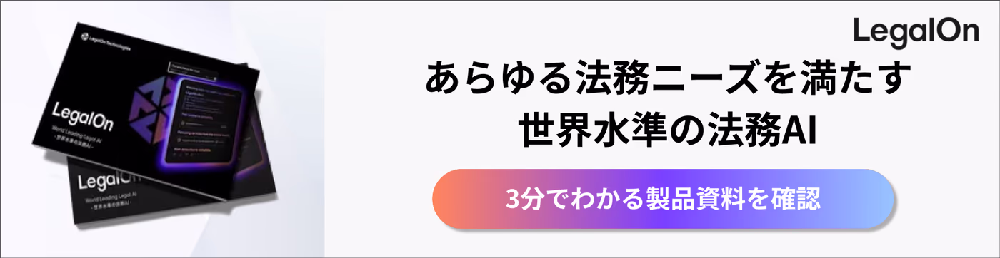 LegalOnは、AIテクノロジーを駆使し、法務業務を広範囲かつ総合的に支援する次世代のリーガルテックプラットフォームです。あらゆる法務業務をAIがカバーできるほか、サービスを選んで導入できるため、初めてリーガルテックの導入を検討する方にもおすすめです。