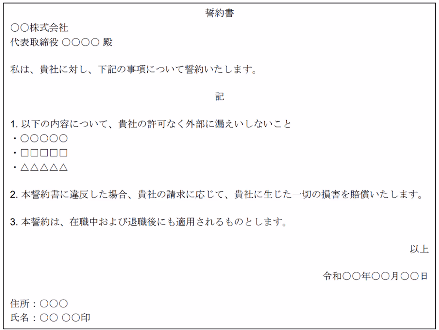特に顧客情報や社内業務に関わる情報は、競合他社に持ち出されると大きな損害を被ります。万一のトラブル防止のため、誓約書として書面化しておくと安心です。