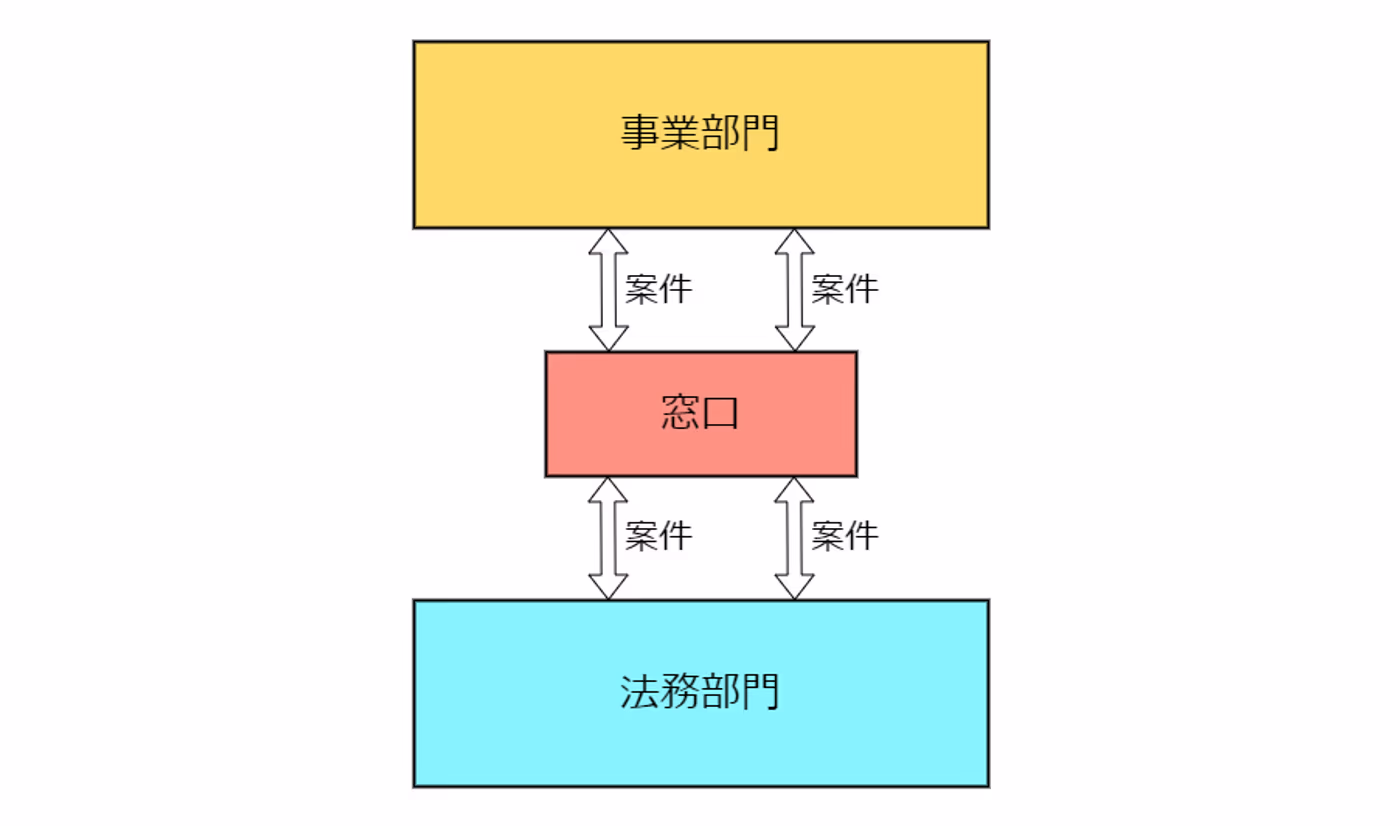 この問題の解決策として、法務部門と事業部門の間に窓口を設置するという方法があります。