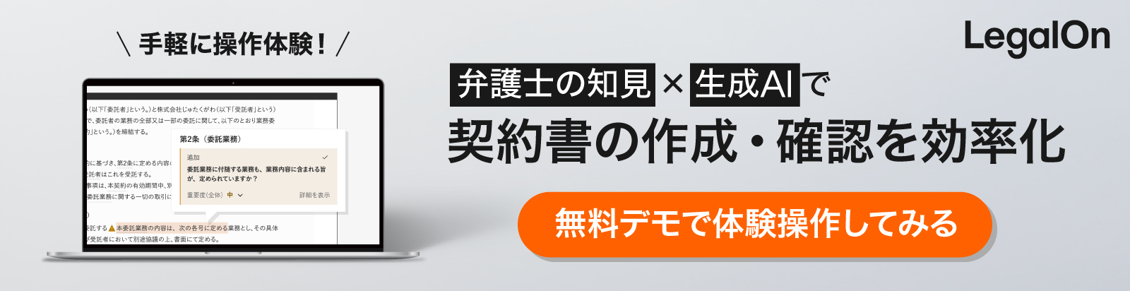 LegalOnは、弁護士の知見と最先端のAI技術を融合し、契約書の作成やレビューを効率化するクラウドサービスです。締結前の契約書作成・審査において、AI技術×弁護士の知見で、見落としなく不利な条項を事前に検知し、有利な条件で契約交渉できる体制を作ることで、適切なリスクマネジメントの実現を支援します。