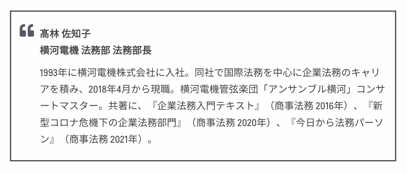 私は法学部卒業後に横河電機に入社しました。国際法務を中心に従事し、法務部歴は26年となります。2018年からは法務部長も務めています。