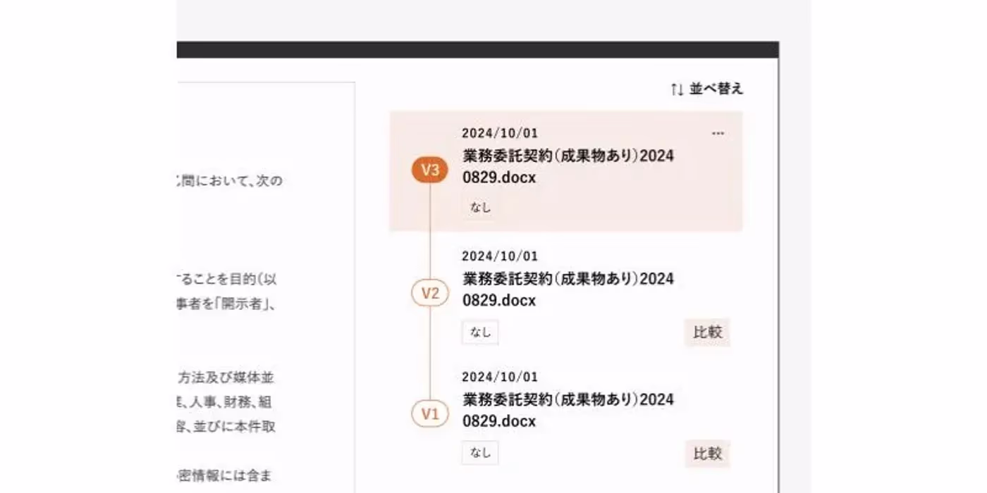 契約書の作成・審査過程では、複数の修正版が同時並行でやり取りされることがあり、最新版の特定や修正点の正確な把握に時間を要します。特に、関係者間で異なるファイル名や保存場所を使用している場合、誤った版を参照してしまうリスクが高まります。