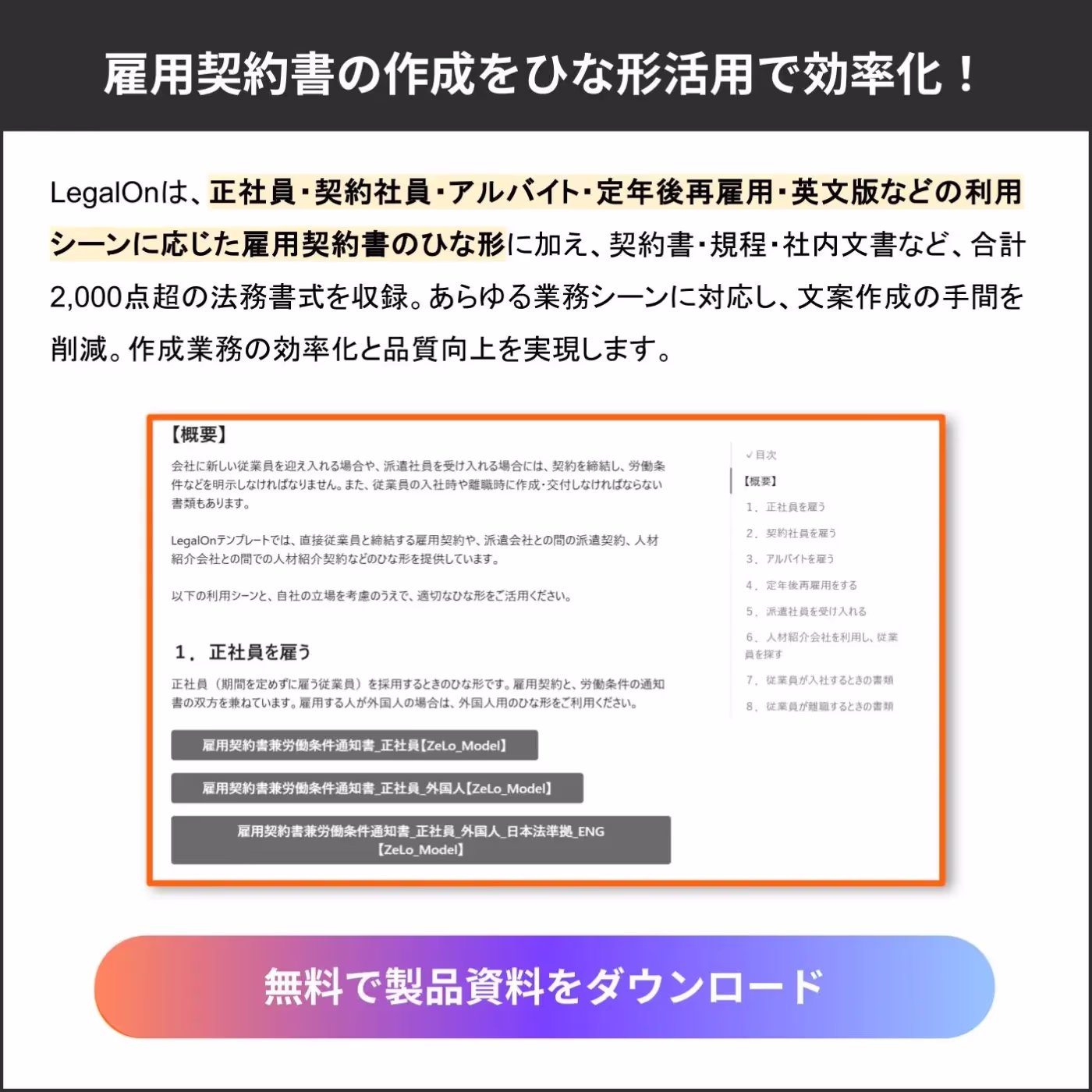 雇用契約書の作成を効率化したい方はぜひ以下の資料をご確認ください!