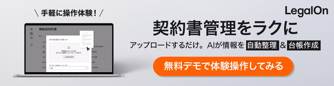 LegalOn Cloudでは、自動で契約書管理台帳を作成する機能があり、入力の手間を削減できます。契約書に関連する文書も含めた情報の紐づけなど、一元管理も容易です。契約書の担当者に更新時期を通知する機能もあり、更新手続きの漏れなどのリスクも低減できます。