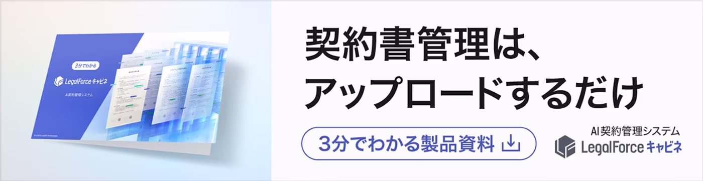 こうした重要書類の文書管理にお困りの方は、LegalForceキャビネをチェックしてみてください。締結済みの契約書をアップロードするだけでAIが自動で項目を抜き出して管理台帳を作成し、簡単に文書の一元管理を実現します。