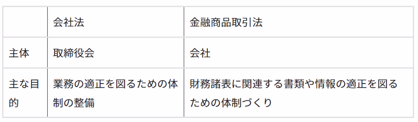 金融商品取引法における内部統制システムとの違い