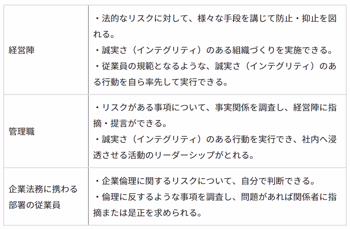 法務に携わる者には、専門家として倫理観のある行動・思考・言動も求められます。