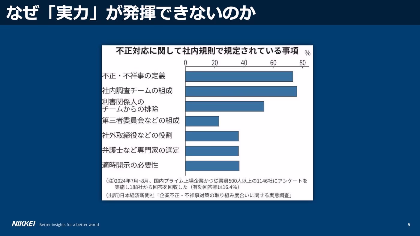 不正対応に関する社内規定整備についてのアンケート結果(※2024年秋 日本経済新聞社実施)