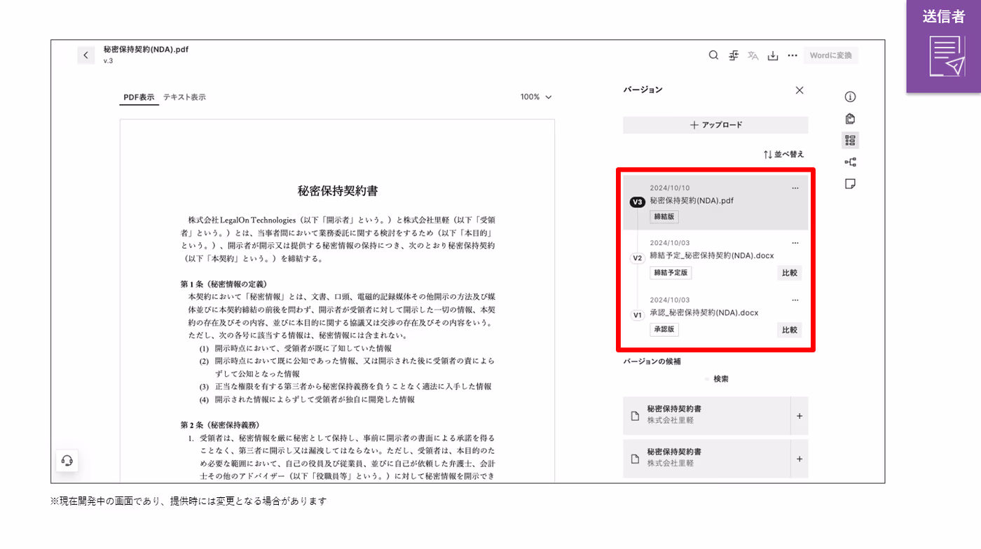 さらにLegalOn Cloudの「サイン」、電子帳簿保存法にも対応した「コントラクトマネジメント」を利用すれば、締結完了と同時に締結版の契約書をはじめ、前のバージョンの契約書や関連資料が自動で保管されます。