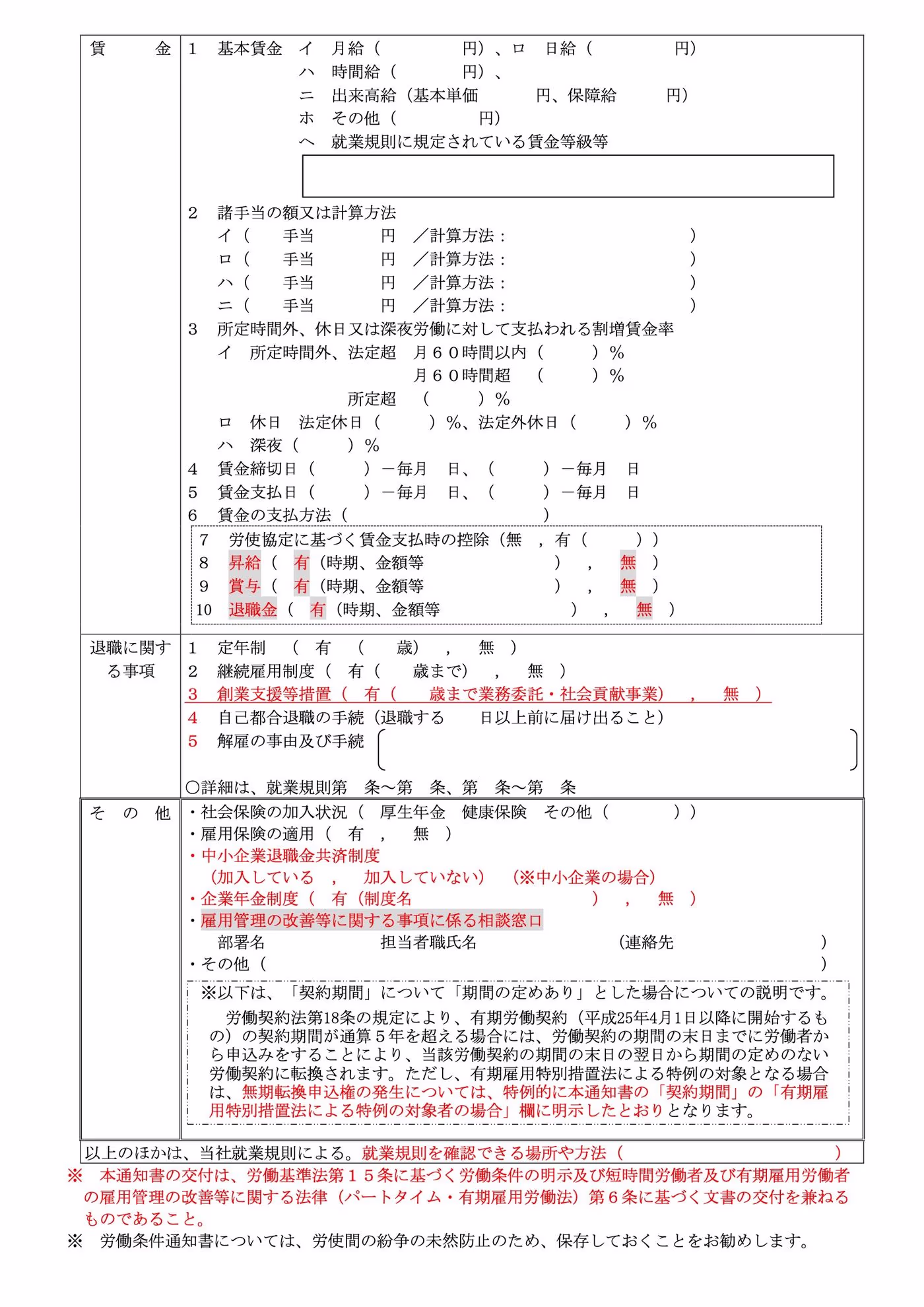 - 労働条件通知書(一般労働者用:常用、有期雇用型)