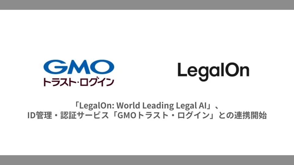 株式会社LegalOn Technologies(本社:東京都渋谷区、代表取締役 執行役員・CEO:角田 望、以下「LegalOn Technologies」)が提供する「LegalOn: World Leading Legal AI」は、GMOインターネットグループのGMOグローバルサイン・ホールディングス株式会社の連結企業群であり電子認証サービスを展開するGMOグローバルサイン株式会社(本社:東京都渋谷区、代表取締役社長:中條 一郎、以下 GMOグローバルサイン)のID管理・認証サービス「GMOトラスト・ログイン」と、2025年9月29日(月)よりSAML認証による連携を開始しました。