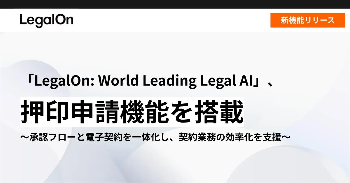 株式会社LegalOn Technologies(本社:東京都渋谷区 代表:代表取締役 執行役員・CEO 角田 望、以下LegalOn Technologies)が提供する、「LegalOn: World Leading Legal AIの「サイン」において、新たに押印申請機能を搭載しました。これにより、契約締結における承認フローを「LegalOn」上で完結させることが可能となります。