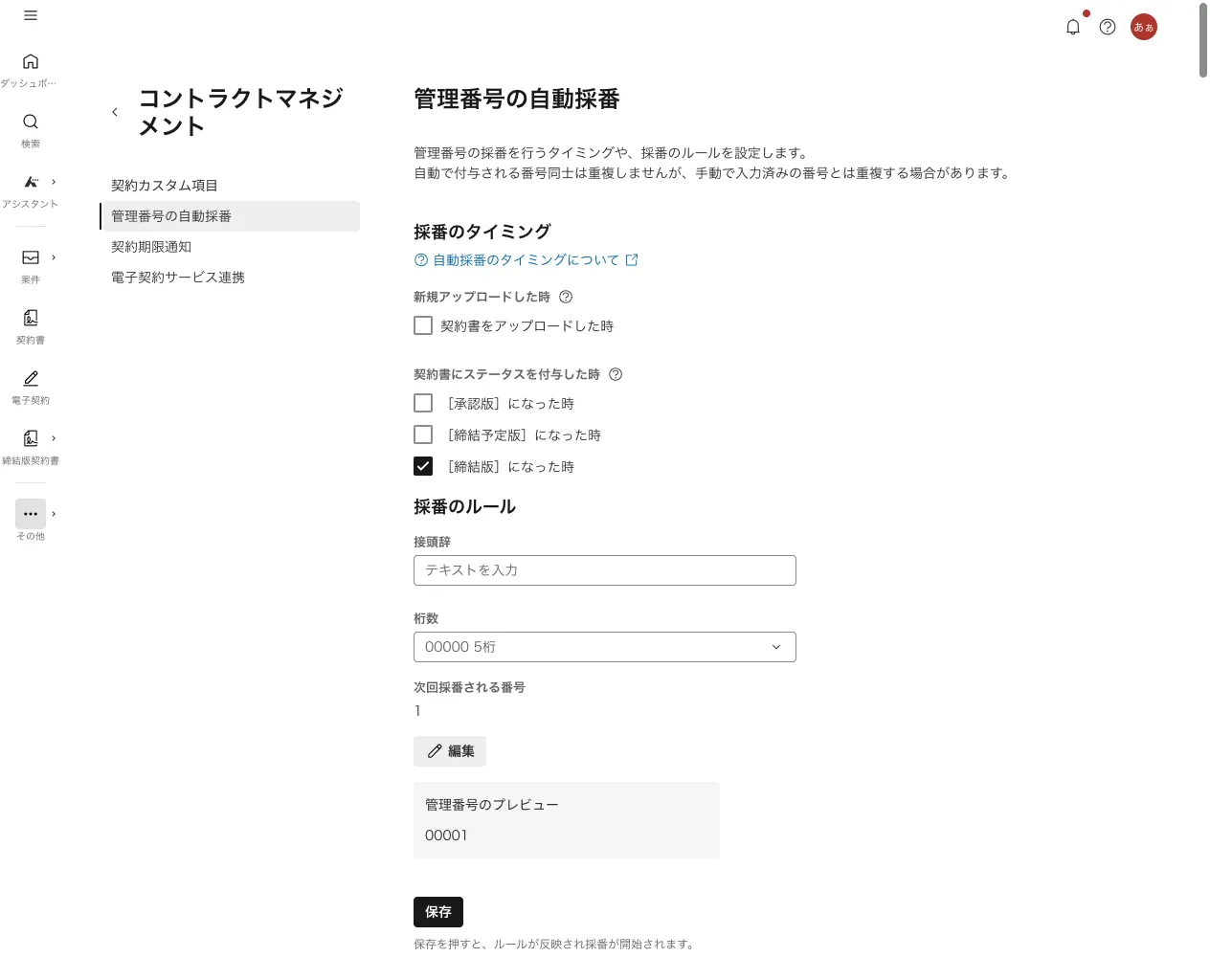 契約書管理番号の自動採番機能をリリース ~自社のルールに基づいて契約書の管理番号を自動付与。契約書管理台帳での手動採番が不要になり、重複採番を予防~