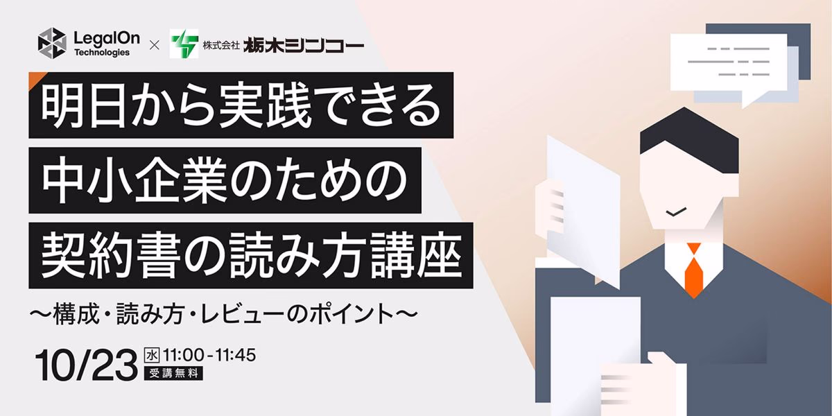 そこで本セミナーでは、契約や契約書とは何かという基本的な部分から、契約書の構成や読み方、契約書をチェックする際のポイントについて解説します。