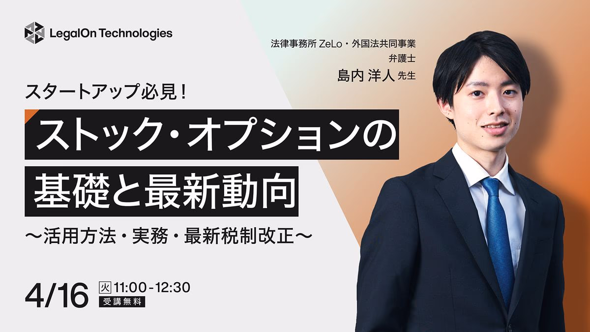 講師は、様々なスキームのストック・オプション導入について、多数の実務経験を有する法律事務所ZeLo・外国法共同事業の島内洋人弁護士です。