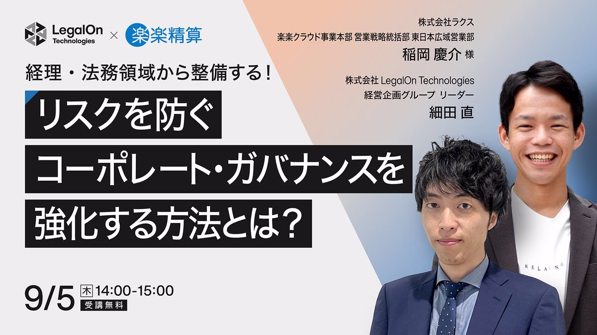 そこで今回は、株式会社Legal On Technologiesより法務領域における効率的なリスクマネジメント方法について、株式会社ラクスからは経理業務の中でも、経費精算領域にフォーカスし、業務上のミスや不正を事前に防ぐための対策について詳しくお伝えいたします。