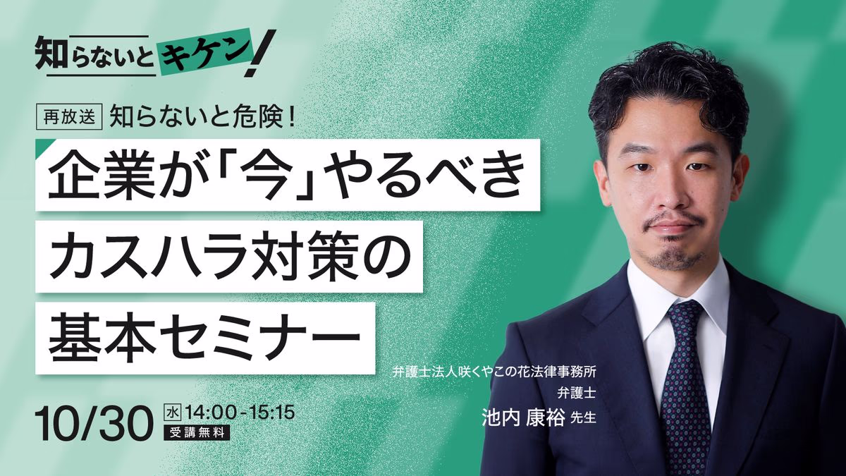 ※本セミナーは、2024年8月29日に放映した『知らないと危険!企業が「今」やるべきカスハラ対策の基本セミナー』の再放送です。セミナーの最後に、ライブ配信で講師による質疑応答を行います。