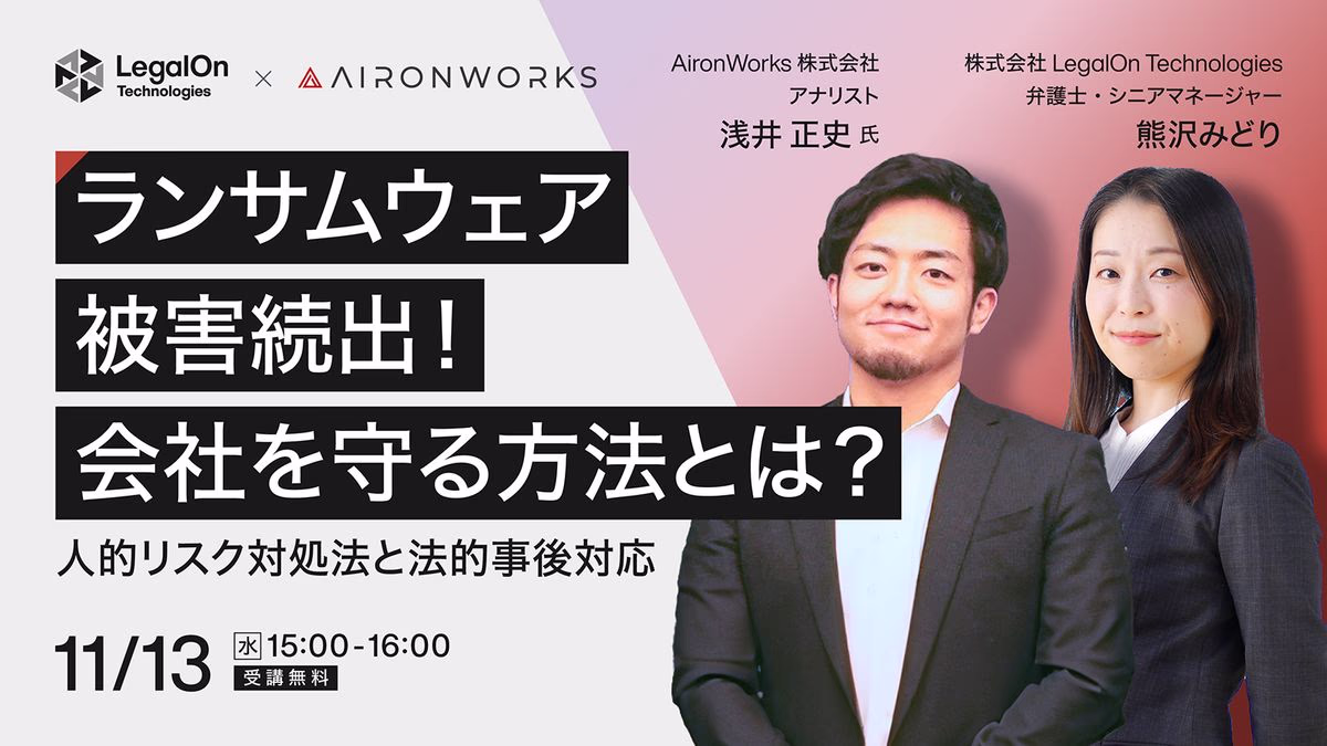 【本日11時締切!】ランサムウェア被害続出!会社を守る方法とは?人的リスク対処法と法的事後対応