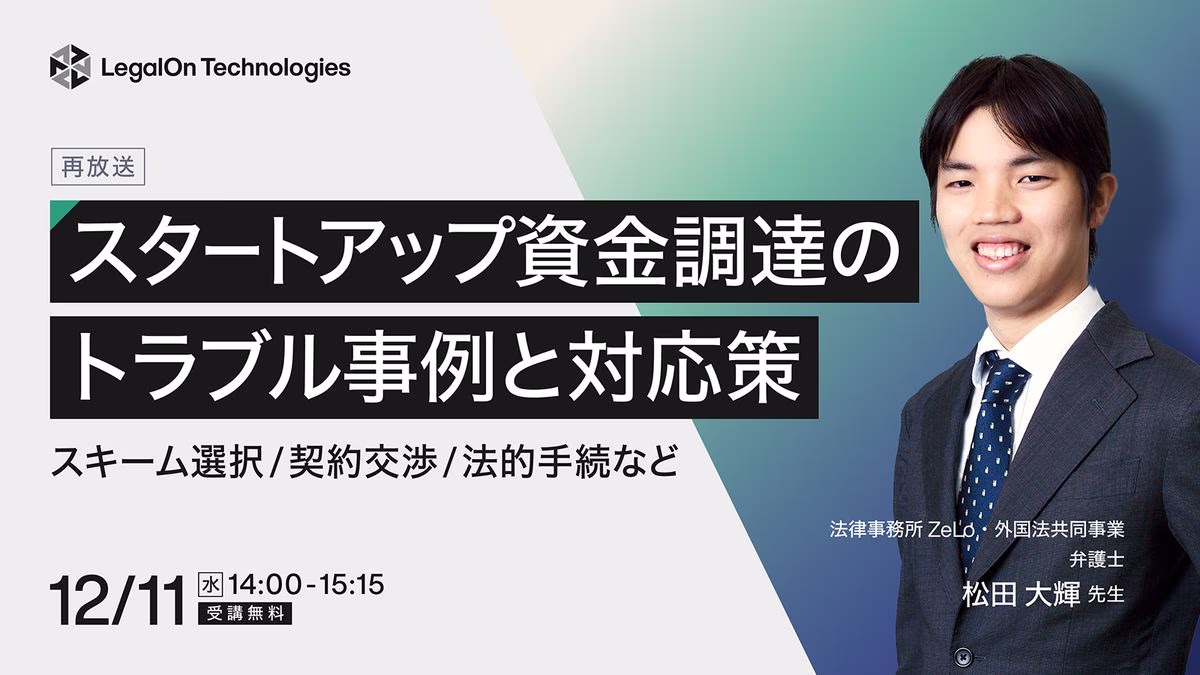 ※本セミナーは、2024年6月5日に放映した『弁護士が語る! スタートアップ資金調達のトラブル事例と対応策 ~スキーム選択・契約交渉・法的手続など~』の再放送です。