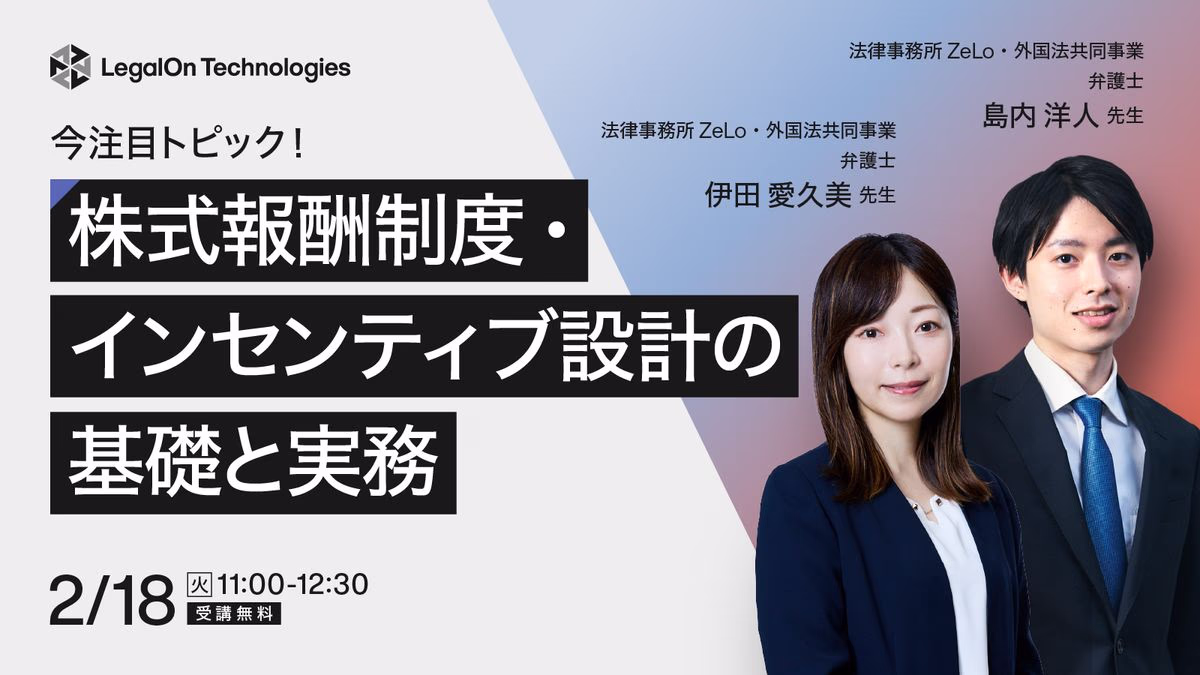 本セミナーでは、役員・従業員向けの株式報酬制度について、基礎知識から各スキームの特徴、実際に導入する際の実務上の留意点やスケジュールまで網羅的にわかりやすく解説します。講師を務めるのは、株式報酬制度の整備の対応実績を多数持つ、法律事務所ZeLo・外国法共同事業の弁護士 伊田愛久美先生と島内洋人先生です。