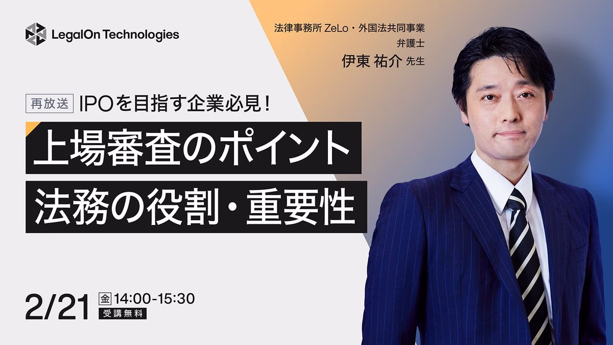 ※本セミナー2023年5月25日に放映された「IPOを目指す企業必見!上場審査のポイントと法務の役割・重要性」の再放送です。