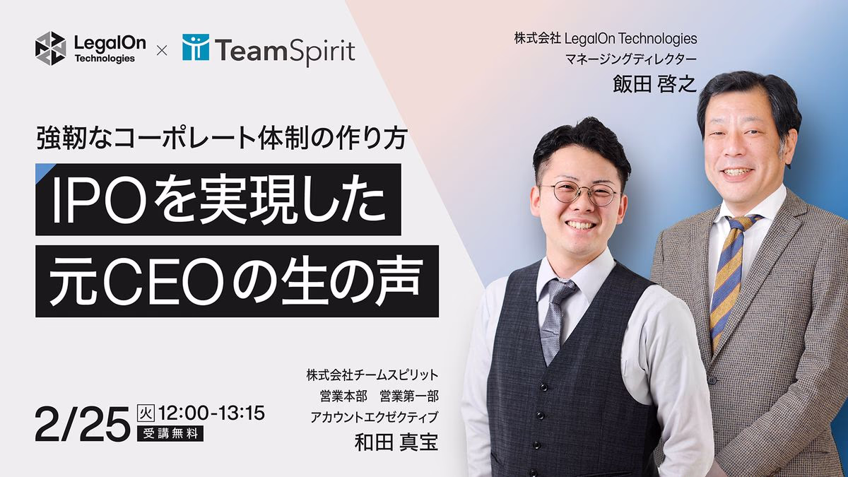 また、IPO準備に不可欠な「労務管理」の重要性について、株式会社チームスピリット様にお越しいただき、解説いただきます。