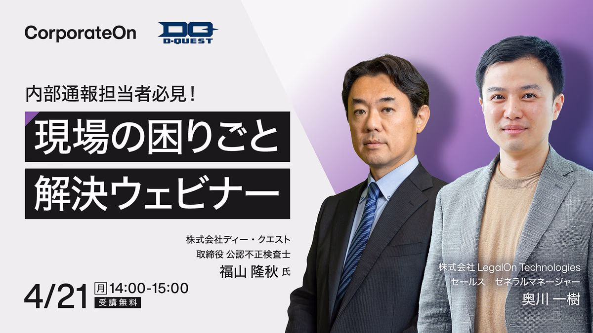 本ウェビナーは、株式会社ディー・クエストと株式会社LegalOn Technologiesが共催でお届けします。