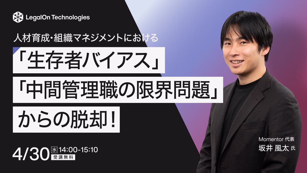 - 株式会社LegalOn Technologies(以下「当社」という)と同業他社に所属される方のご参加はご遠慮いただいております。
