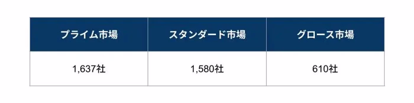 スタンダード市場とは2022年4月の東京証券取引所の市場区分再編により新設された、中堅企業向けの株式市場です。東証の市場区分は、現在下記の3つに分かれています。