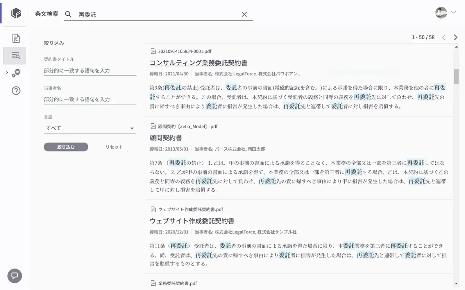 締結済みの契約書の検索も楽になりました。契約書名が思い出せないときには相手方の会社名や代表者名で検索するのですが、曖昧な情報でも目当ての契約書にたどり着くことができ助かっています。