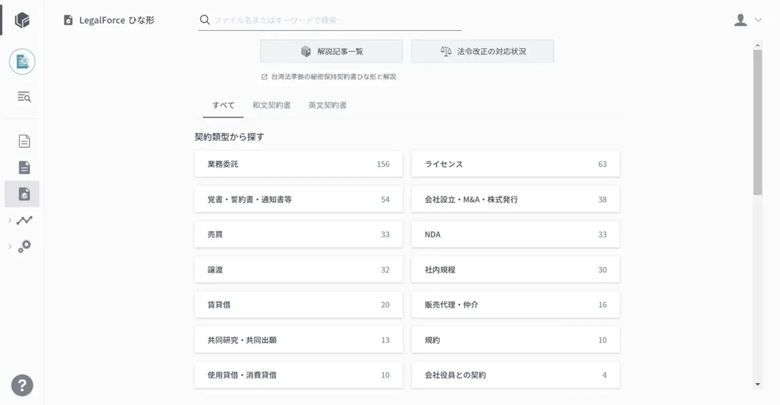また「LegalForceひな形」も日常的に活用しています。月5~6件くらいは新しく契約書を作成する機会があり、その際のドラフトはLegalForceひな形をもとに作成して効率化を図っています。