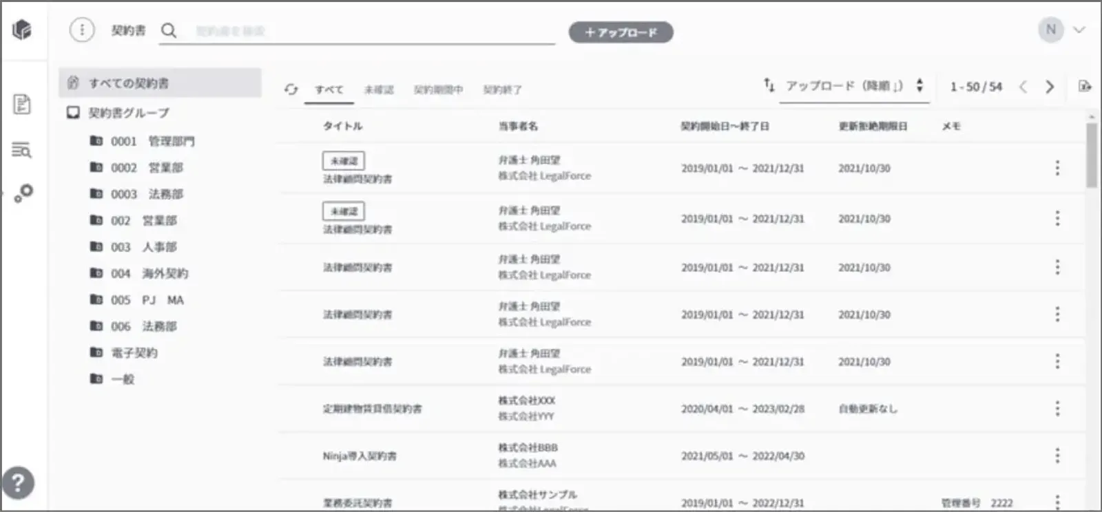 特に施設の維持管理などの委託業務のように、本来定期的に内容の見直しをかけた方が良い契約書は、即座に確認することができます。契約解除の申し出期間が定められている場合についてもLegalForceキャビネのアラート機能で事前確認が可能となりました。医療機器の保守契約などについても、更新のタイミングがバラバラになりがちです。期限が終了していた、意図せず自動更新していた、といったリスクが発生しやすいので、LegalForceキャビネを使って適切な契約管理を行うことをおすすめしたいです。